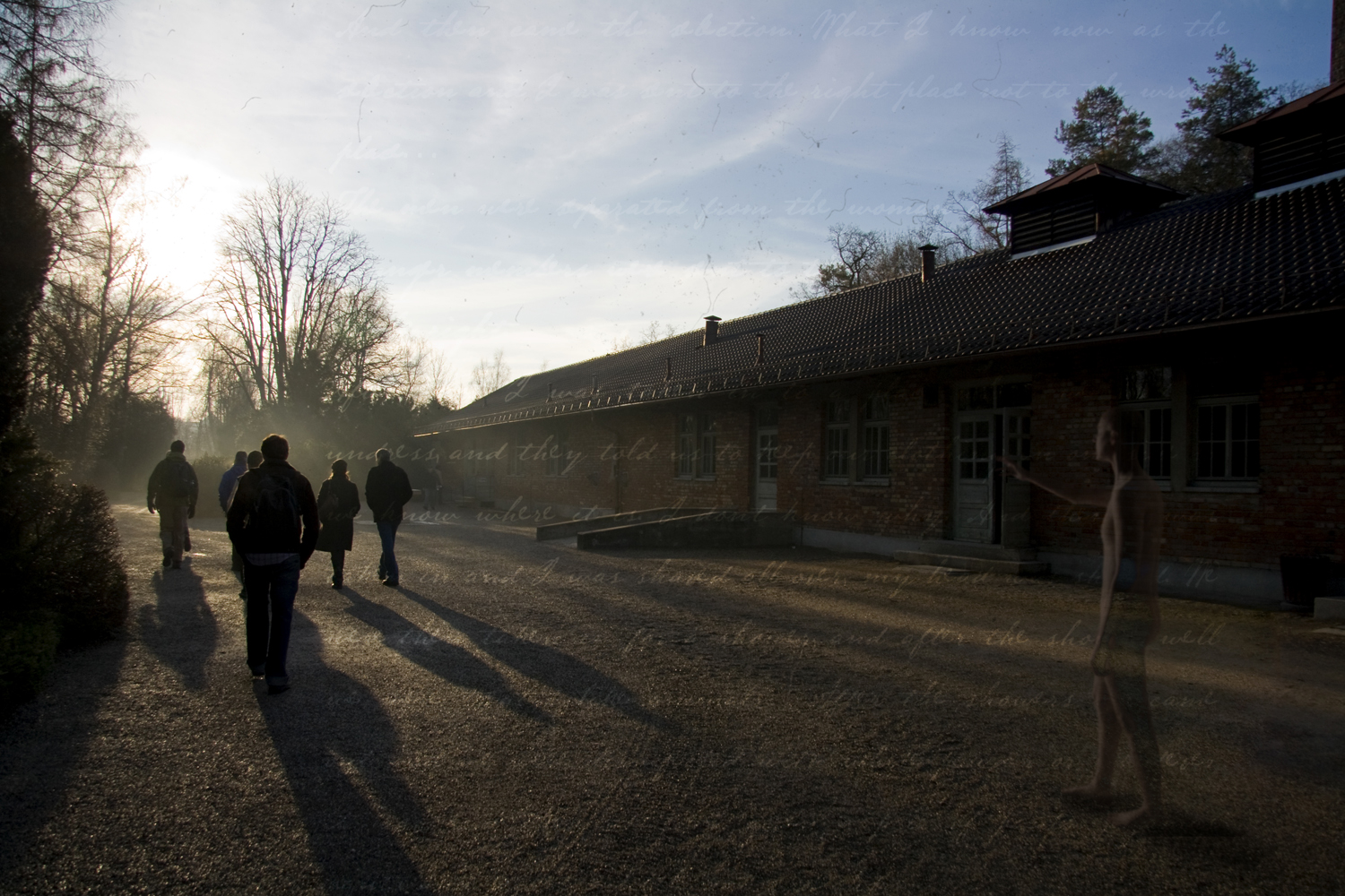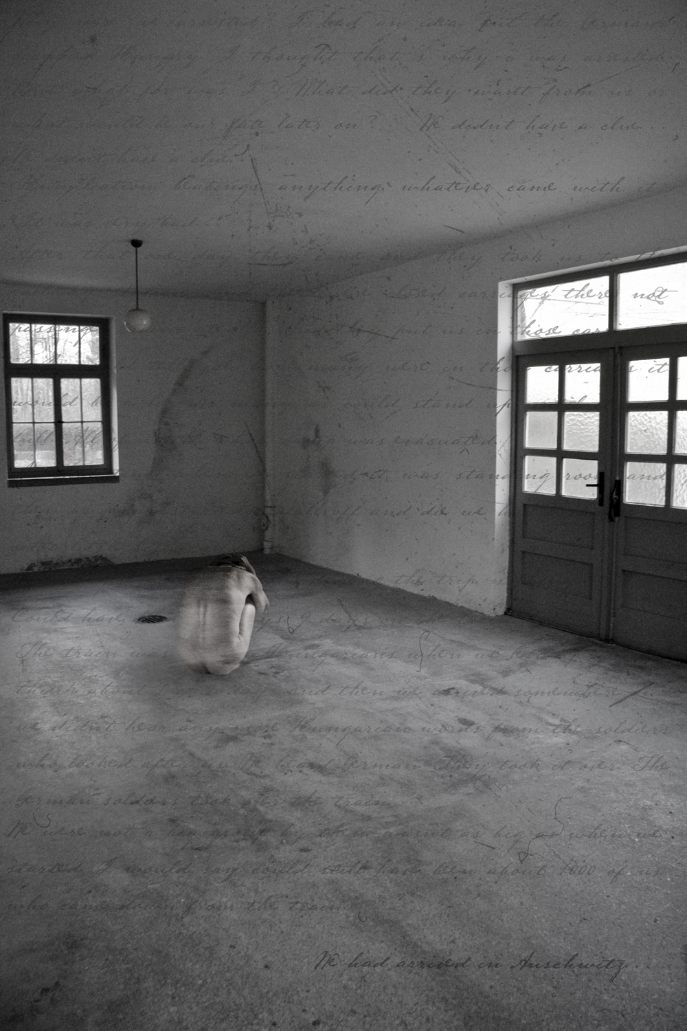 I used the base images I had shot in Germany in conjunction with images of a nude man which I shot in the studio. These images were overlayed onto the base images to create a sense of past and present within the same image. I then went to the Sydney Jewish Museum to obtain Shoah testimonies to use as a final overlay on the images.
